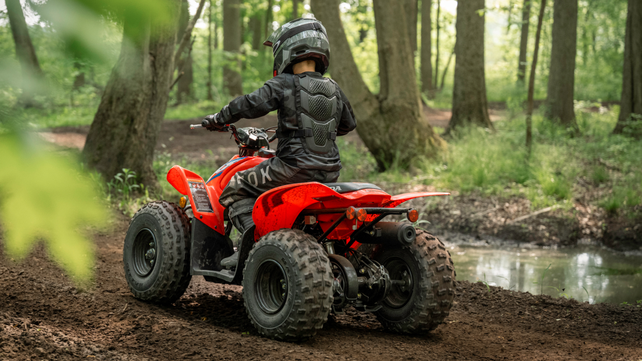 Rien n’est plus important que de commencer du bon pied. Le TRX90X est un excellent choix pour enseigner les rudiments de la conduite sur les sentiers Sa taille compacte en fait un bon choix pour les jeunes conducteurs. Il est aussi moins intimidant qu’un VTT ordinaire.